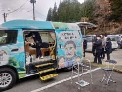 小国公立病院で運用されている医療MaaS 実習に、本学薬学部および崇城大学薬学部の学生が参加しました。医療MaaSの実車とサテライト診療所をオンラインシステムにてつなぎ、学生が患者役となり、片岡恵一郎医師によるデモ遠隔診療の実習を体験しました。